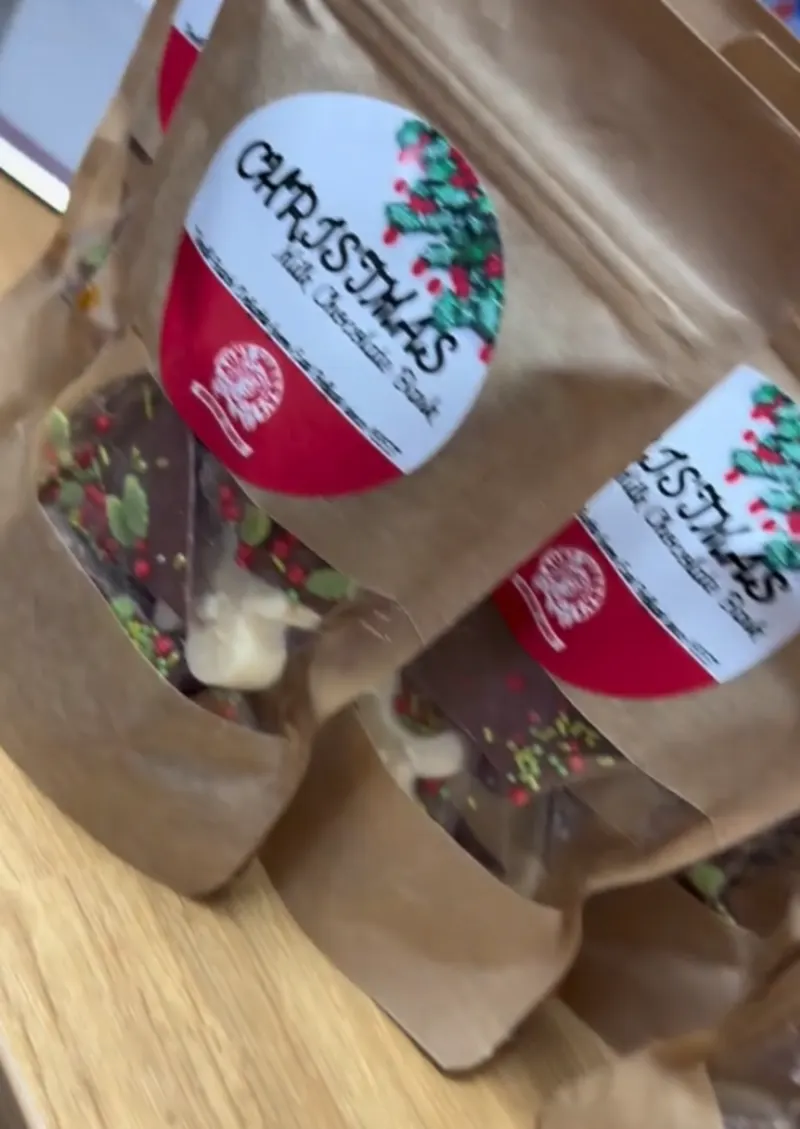 Celebrate love with our Christmas Milk Chocolate Bark, lovingly crafted in our East Belfast shop. We start with the finest Belgian milk chocolate, then layer it with a beautiful mix of heart-shaped decorations, colourful sprinkles, and sweet treats, making each piece as delightful to look at as it is to eat. Perfect for sharing with someone special, this indulgent bark combines smooth, creamy chocolate with a festive, playful touch—making it the ideal Christmas Day treat to show you care.