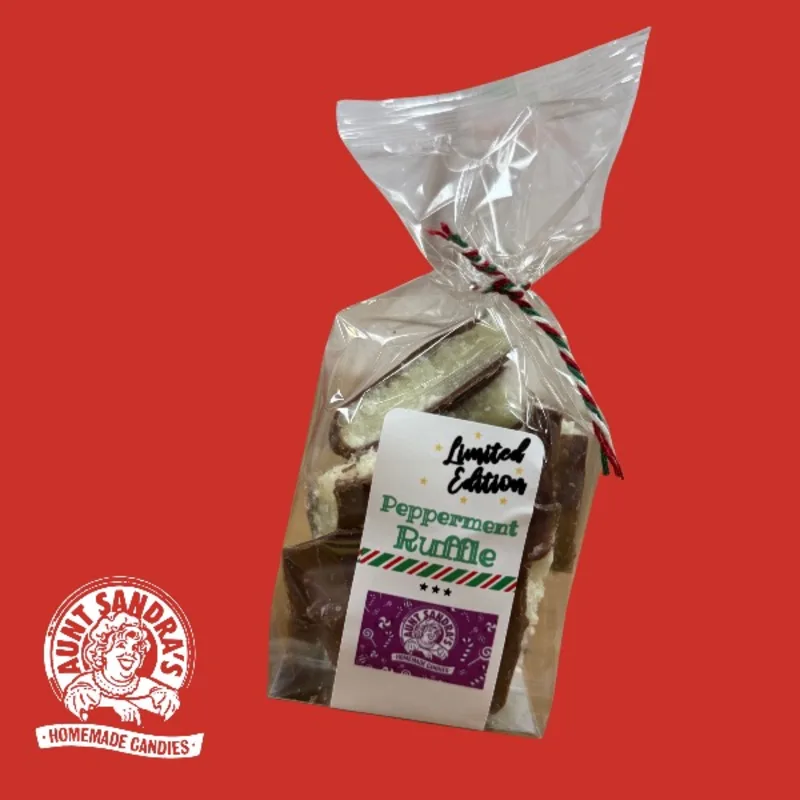 Our Christmas Limited Edition Peppermint Ruffle is lovingly handmade in our factory especially for the festive season. This seasonal favourite combines a soft, fluffy peppermint centre with a deliciously sweet coating, creating a refreshing and nostalgic Christmas treat.