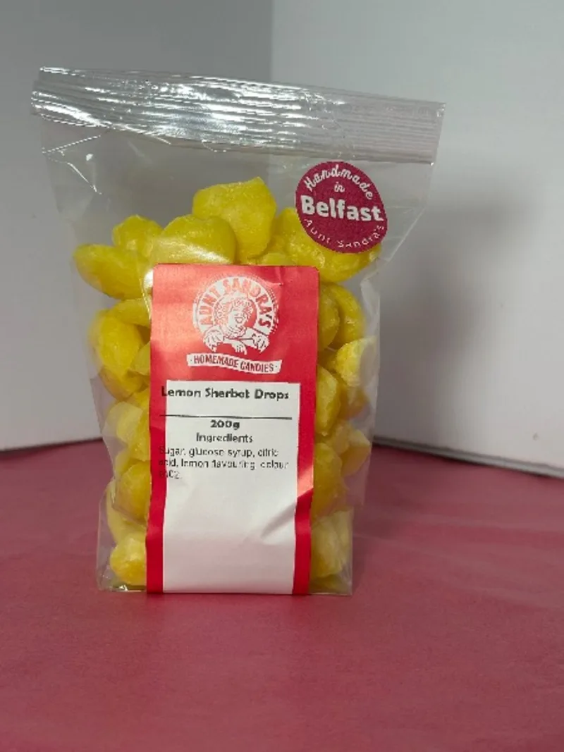 Our handmade 300g of Lemon Sherbet boiled sweets. An original traditional sharp lemon tasting boiled sweet with a fizz and handmade for you.